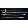 1) KNIGHTS TEMPLAR SWORD. Overall length: 39 1/4". Blade length: 30". Blade is etched over 2/3 of its length w/ various foliate & Templar motifs. Ricasso is etched, “J.R. PETTIS & CO. TROY. N.Y.”. Silver plated hilt w/ Templar motifs. Certifiably antique ivory grip w/ Templar insignia applied. Silver plated scabbard w/ Templar themed mounts. CONDITION: blade shows evidence of sharpening & has a somewhat dark patina. Hilt retains some areas of original plating. Grip has very tiny age cracks. Scabbard shows overall expected wear w/ some loss of plating. (02-15111/BF). 2) MOVIE PROP SWORD. Overall length: 34 1/2". Blade length: 28". Plain blade. Brass crossguard & knight’s head pommel. Wood grip. No scabbard. CONDITION: blade has a dark patina. Crossguard & pommel have been heavily cleaned. Wood grip shows wear & staining. Consignor states this was a movie prop sword. (02-15122/BF). 3) M1902 OFFICER'S SABER. Overall length: 36". Blade length: 30". Blade is etched over 2/3 of its length w/ various military & foliate motifs including a central panel etched w/ the name, “John W. Owens”. Plated hilt. Formed composite grip. Plated scabbard. CONDITION: blade has a pleasing finish. Hilt & scabbard show light wear w/ some minor bubbling to the scabbard surface. (02-15123/BF). 4) REPRODUCTION CONFEDERATE SWORD. Overall length: 39 1/4". Blade length: 33 1/2". Blade has a shallow, unstopped fuller & is stamped at the ricasso, “NASHVILLE PLOW WORKS” on 1 side & “CS1862” on the other. Brass hilt. Backstrap is engraved, “Lt. A.N. GA. 1864”. Wire wrapped leather grip. No scabbard. CONDITION: a heavily aged reproduction sword w/ oxidation on the blade, a deep patina on the hilt & aging to the grip. (02-15126/BF). $500-700.