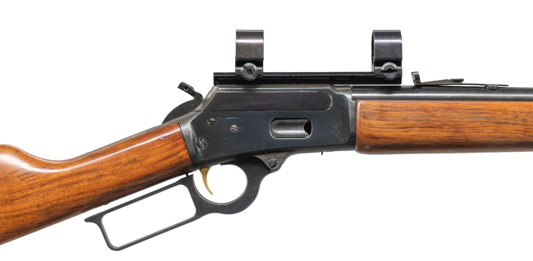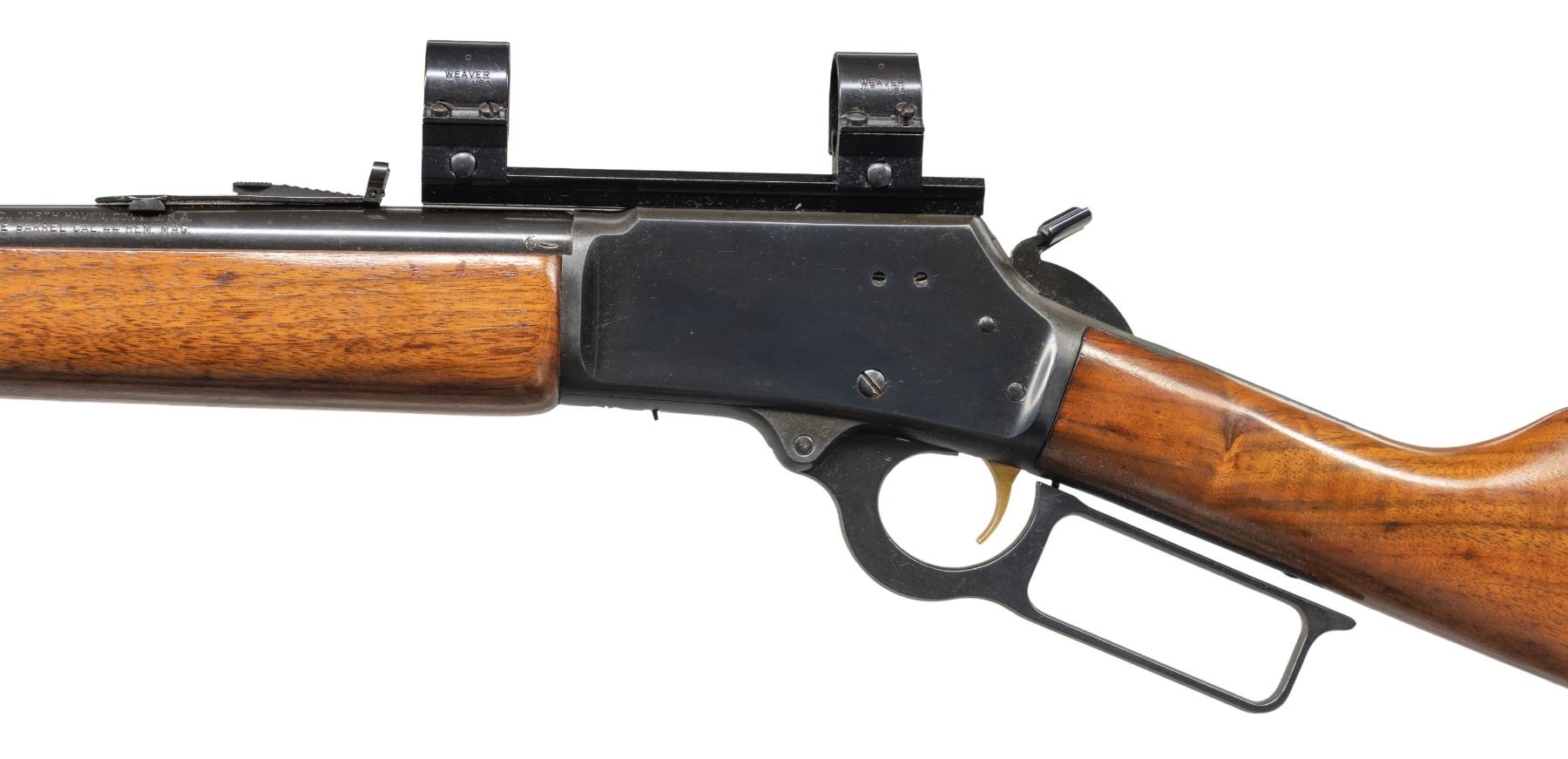 Cal. 44 Mag. S# 23152889. Mfg. 1977. Standard pre-CBS configuration w/ Micro-groove 20" barrel & walnut stock set; added Weaver rings & base along with added sling studs. CONDITION: near excellent wood & metal finish. Near excellent rifling. (25-4833/MD). MODERN. $500-700.