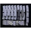 22-30 Rd. mags., all of which are traditional aluminum construction, aside from 1-30 rd. Thermold mag. / 24 Aluminum bodied 20 rd. mags., all of which are Colt mfg. At least 1 has the factory block for 5 rd. capacity w/ out modification to the original capacity. Included is 1 box of 7 mags. w/ the following nomenclature: “1005-056-2237 / MAGAZINE ASSEMBLY / 7 EACH / DAAF03-69-C-0007 / A-8/69”. All are in issued condition. (02-13776-20/JZ). NONGUN. $300-600.