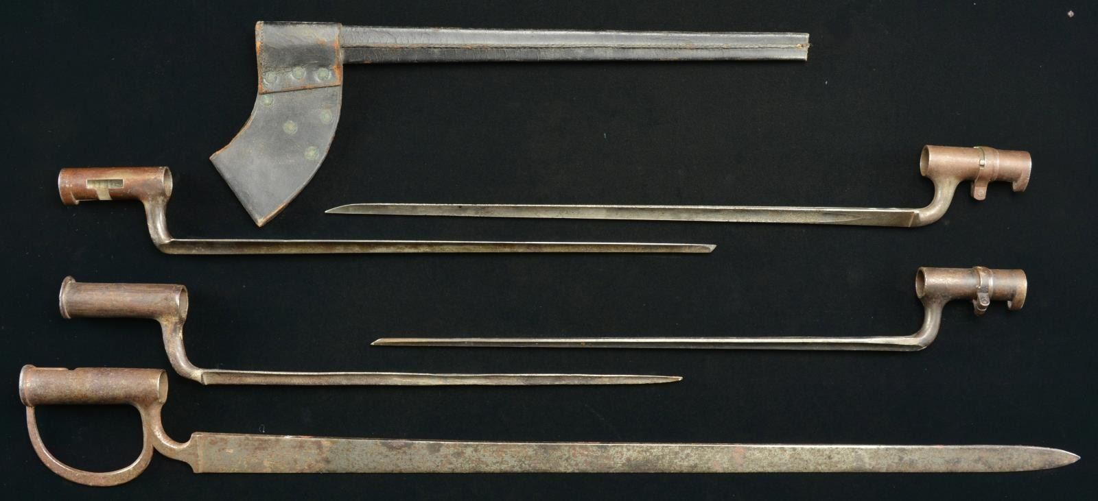 4) UNMARKED SOCKET BAYONET: Overall: 21". Blade: 17.5" marked "19". CONDITION: Fair overall w/ pitting & oxidation.