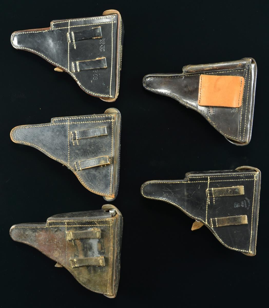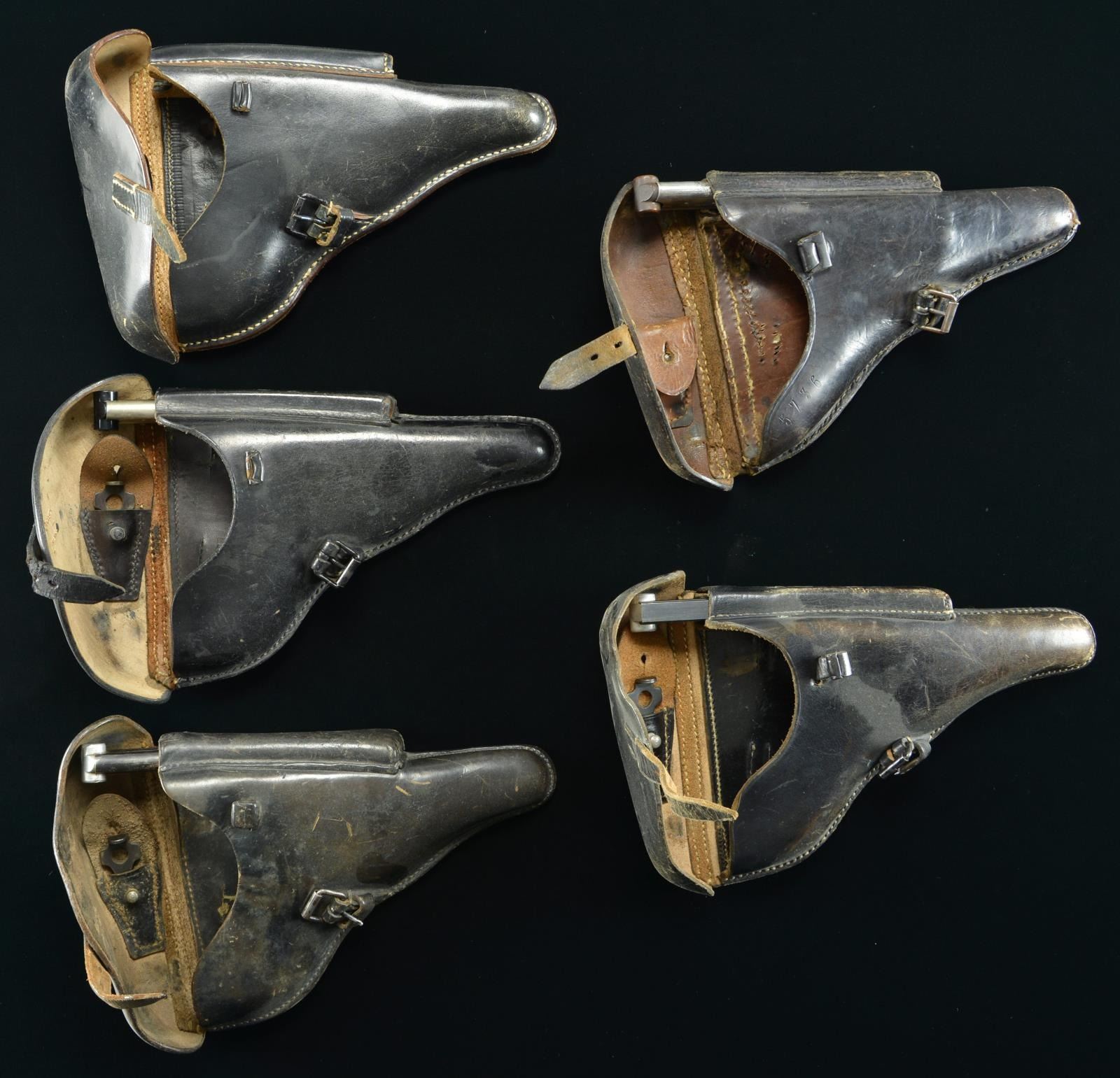 5 BLACK STANDARD LUGER FLAP HOLSTERS.