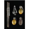 2) P1. A "pear" shaped grenade designed early in WWI w/ a rather lg. spoon lever & having a cast iron body. A brass ID disk is attached by wire through a hole in the lever.