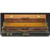 2) James Woodward & Sons leather covered & brass corner reinforced oak case w/ leather handle. Lid is embossed “E NOEL” & the interior is red felt lined with three compartments w/ brass knobs. 35 3/4" x 13” x 3 1/2". CONDITION: Good exterior w/ fair interior w/ felt loss, tears & soiling. Interior lid label is soiled but nearly intact.