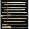 2) SANDERSON. Blade dated "7 18" w/ other proofs on right side. "AC" & "18" marked scabbard. CONDITION: very good bead blasted finish on blade. Good metal & wood finish on bayonet. Good finish on scabbard.