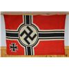 2) BATTLE FLAG. Flag measures approx. 36" x 23 1/2". This printed red cotton flag depicts a central Party symbol in the center of a black cross with a Maltese Cross in the canton. The hoist is stenciled "60 x 90" & "REICHSKRIEGSFAHNE". CONDITION: flag appears to be unissued with no stains or damage.