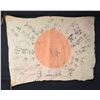 1,2) A pair of 18” x 14” silk flags with reinforced corners & tie strings at each corner. CONDITION: light wear. 3) A 43” x 29” silk flag with reinforced corners & two tie strings at each corner. CONDITION: light wear with some staining. 4) A 40” x 32” silk prayer flag with reinforced corners & two tie strings at each corner. Flag has black inked prayers throughout. CONDITION: moderate to heavy wear with fading & stains. 5) A 56” x 83” cotton flag with leather reinforced corners. Each reinforcement has a metal grommet for suspension by the hoist. CONDITION: flag is in solid condition but has numerous scattered stains. (02-20918/BF). $600-900.