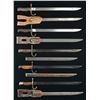 Appear to be mfg. by Tokyo or Kokura Arsenal. Overall: 20". Fullered 15 5/8" blades. Hooked quillon crossguards. 2 Piece grip panels w/ screws. Bird's head pommels. Steel scabbards.