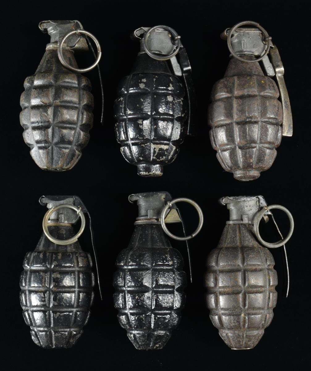6 INERT WWI US MK I & MK II GRENADES.