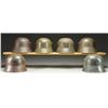 1) AUSTRIAN. A M1916 Austrian helmet reissued to WWII German forces. The helmet has a green overpaint received upon reissue & a single Wehrmacht decal on the left side. Full post WWI liner & partial chinstrap. CONDITION: finish is about 60%. Liner shows heavy wear. Chinstrap is about 50% complete.