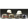 4) GERMAN. A German light weight Civic square dip helmet with white painted finish. The left side of the helmet has a Red Cross decal. Inside rear of the helmet is stamped "B BXF VORSCHRIFTSMASSIE LT. GESETZ 3.5.34". 9 Tongue brown leather liner stamped "55" & a dark brown leather chinstrap. The inside of the helmet still shows the original black painted finish of the Civic helmet. CONDITION: white finish has yellowed a bit & is about 97% intact. Liner & chinstrap remain quite strong.