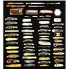 A wide selection of single blade, multi blade, & fixed blade knives of various manufacturers; including 3 mini 1 1/2" knives. CONDITION: knives vary between fair & good w/ patina, pitting, & sharpening. (02-17568/MD). $550-750.