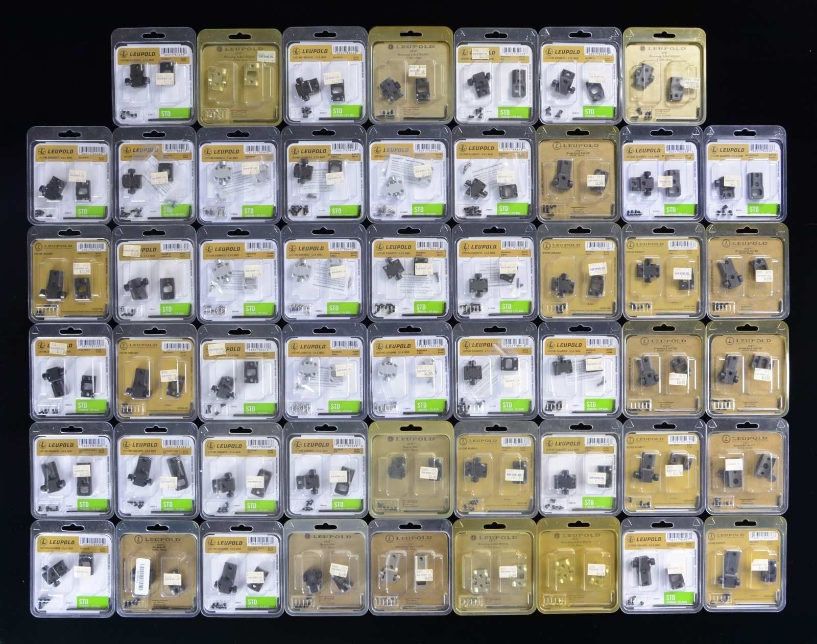 All new in factory packaging. Standard blued finish unless noted as Matte or Silver. BROWNING: 7 X-Bolt #65416 matte, 7 X-Bolt #65425 silver (1 repackaged, used), 4 A-Bolt #50030 matte, 5 A-Bolt #50036, 6 A-Bolt WSSM #57330, 7 A-Bolt WSSM #57340 matte, 8 A-Bolt WSSM #57350 silver, 5 BLR #50238 matte. WEATHERBY MARK V: 3 #51701 matte, 1 #51712 matte, 2 #51703 RVF matte, 1 #51704 RVF silver, 1 #51700, 2 Lightweight #52507 matte. MAUSER: 2 M96 #51263 matte, 2 M98 #52370 matte, 5 FN #50025, 1 FN #50026 matte. TIKKA: 4 Whitetail Hunter #54447. PROVENANCE: The Collection of Gun Sport Ltd owned by Jon R. Thomas. (02-20856-3/NW). $900-1,400.