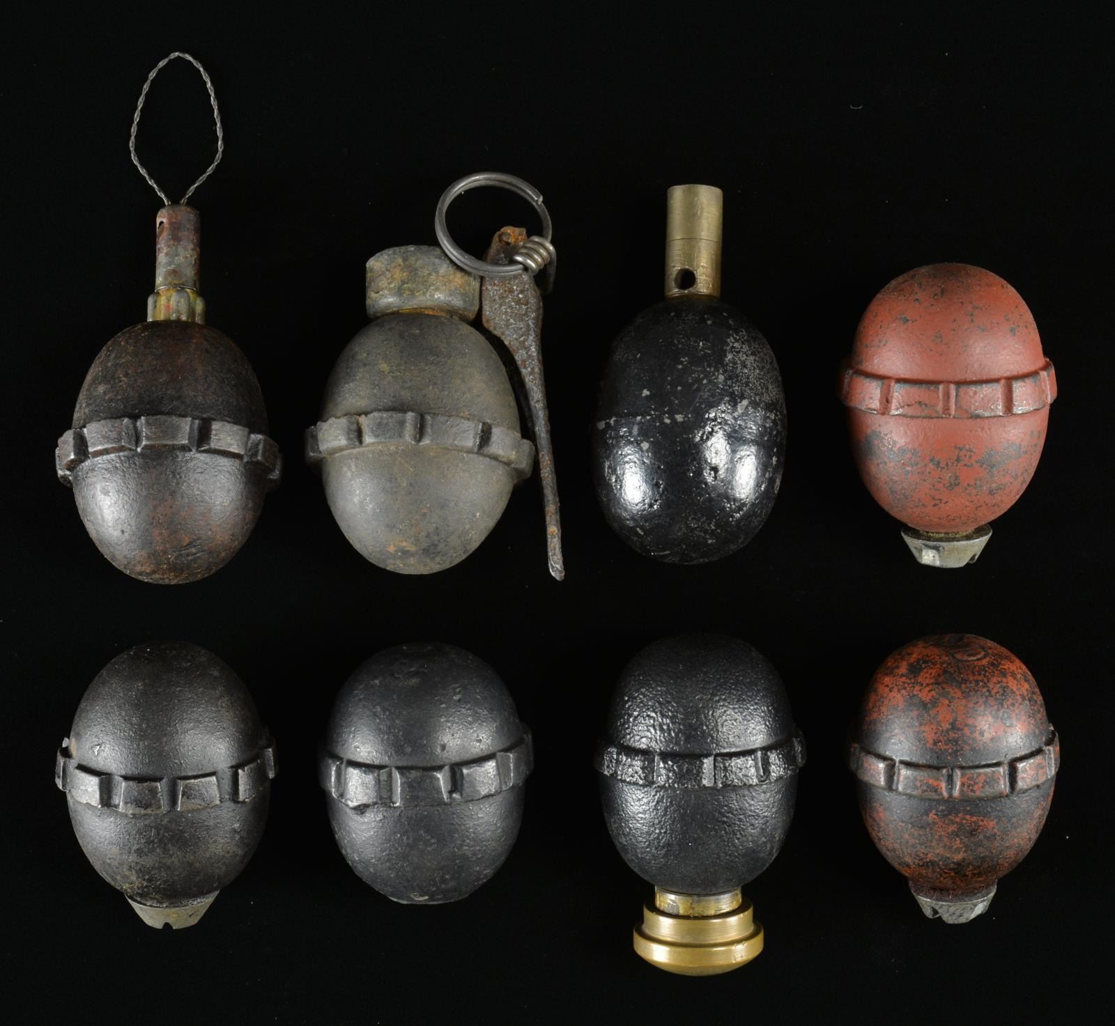 8 INERT WWI GERMAN MODEL 17 EIERHANDGRANATES.