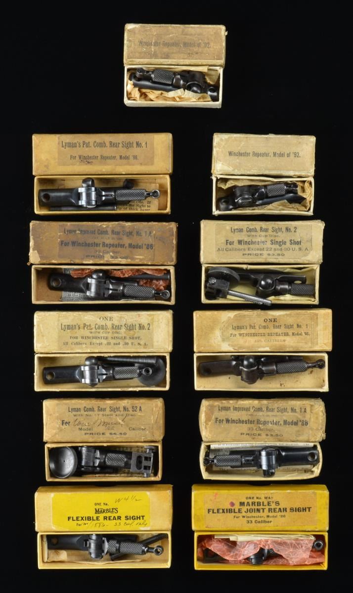 9 BOXED LYMAN COMBINATION TANG SIGHTS & 2 BOXED