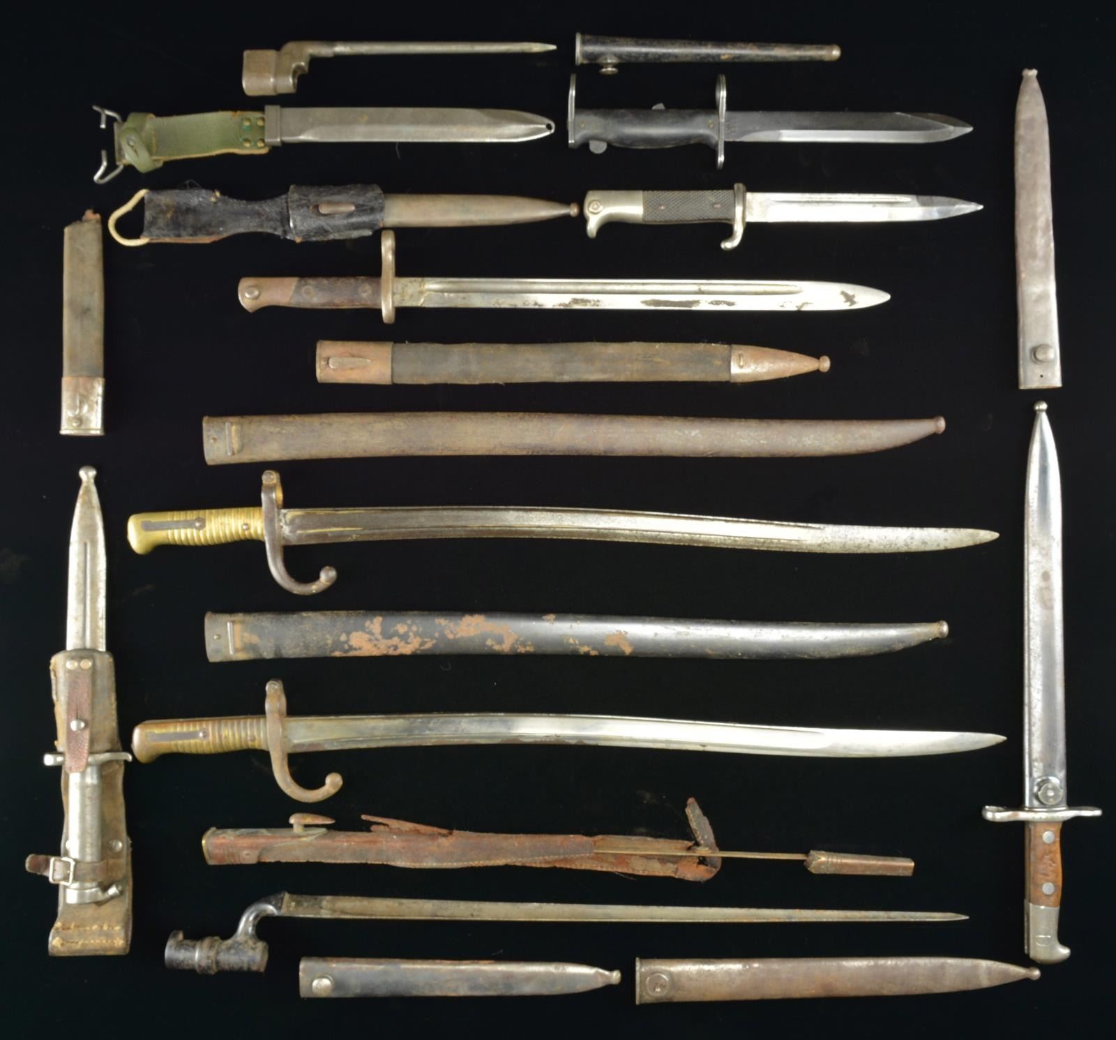 9 EUROPEAN BAYONETS & 4 SCABBARDS.