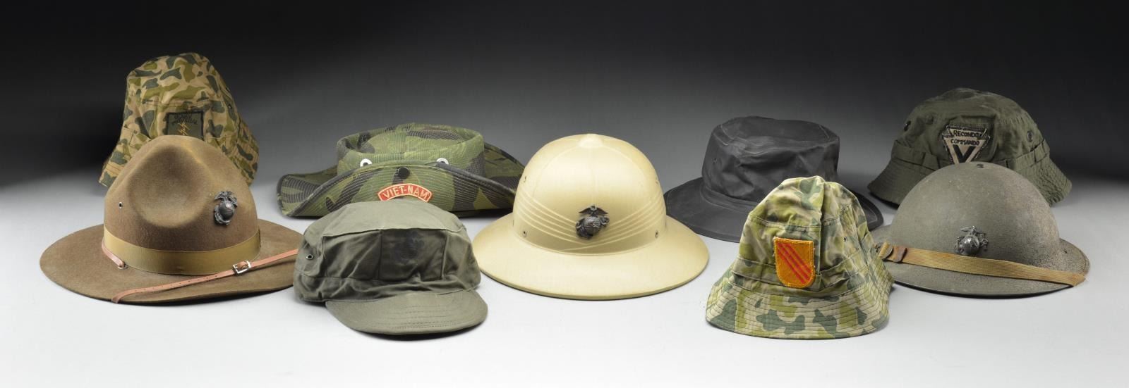 9 EXAMPLES OF U.S. MARINE HEADGEAR.
