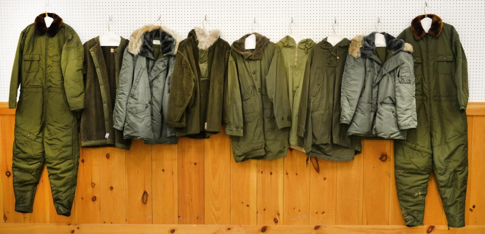 9 Heavy coat & parkas for cold weather & flight. CONDITION: all in very good unissued condition & well kept through the years. Very clean & stylish for those cold months heading to gun shows. (02-14115). $400-600.