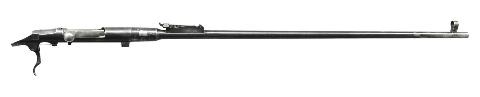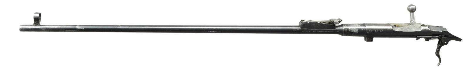 Cal. 7.62x54R. S #SD2935. Bbl. 29" w/ import marking. Lot consists of 91/30 round receiver, bbl, rear sight, front sight w/ hood, trigger & mismatched bolt body. No other parts present including cocking knob, bolt head or bolt internals. Bbl. top marked w/ 1939 date, Izhevsk logo, serial number & Finnish D marking. Left side of bbl. marked w/ boxed "SA" Finnish army stamp. Importer added serial on left of receiver. Tangent rear sight graduated to 2000 meters. Post front sight w/ protective hood. CONDITION: metal retains 60% arsenal blue w/ scattered thinning, fading & light oxidation. Worn bore w/ scattered oxidation. (22-2651/MJC). MODERN. $40-60.