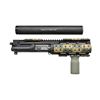 GUN M.I.M.S. SUPPRESSOR. Cal. 9mm. S# M93035. Bbl. 4". Integrally suppressed, complete upper receiver set up for 9mm Parabellum. Includes bolt & charging handle. Short (9mm) dust cover & brass deflector. POF-USA P-4X rail system providing 14" of solid rail on top w/ accessory rails at 3, 6 & 9 O'Clock. Short, 4" barrel & 12.5" M.I.M.S. suppressor inside POF Quad Rail in a similar configuration to a typical "SD". Suppressor OD is 1.75". Current thread and pitch 5/8x24. Rails partially covered w/ green / tan covers, sporting MAGPUL MOE vertical foregrip. CONDITION: exterior finish is complete & consistent. Bright bore w/ strong rifling. NATIONAL FIREARMS ACT SUPPRESSOR REQUIRING BATF TRANSFER BEFORE TAKING POSSESSION. FULLY TRANSFERABLE. (03-1600/JZ). MODERN, CLASS III. $800-1,200.