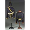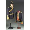 8) MESS JECKET. A black jacket with numerous small round buttons on the edge of the front. The entire jacket is bordered by 1" gold bullion that loops twice in the back. There is gold bullion decoration extending 8" up each sleeve & the bottom of the cuffs are red. The collar is red with silver bullion flaming bombs on each side. The knotted shoulder straps display a bullion crown with 2 large pips indicating the rank of Colonel. Jacket is lined in red cotton with red leather trim at the base.