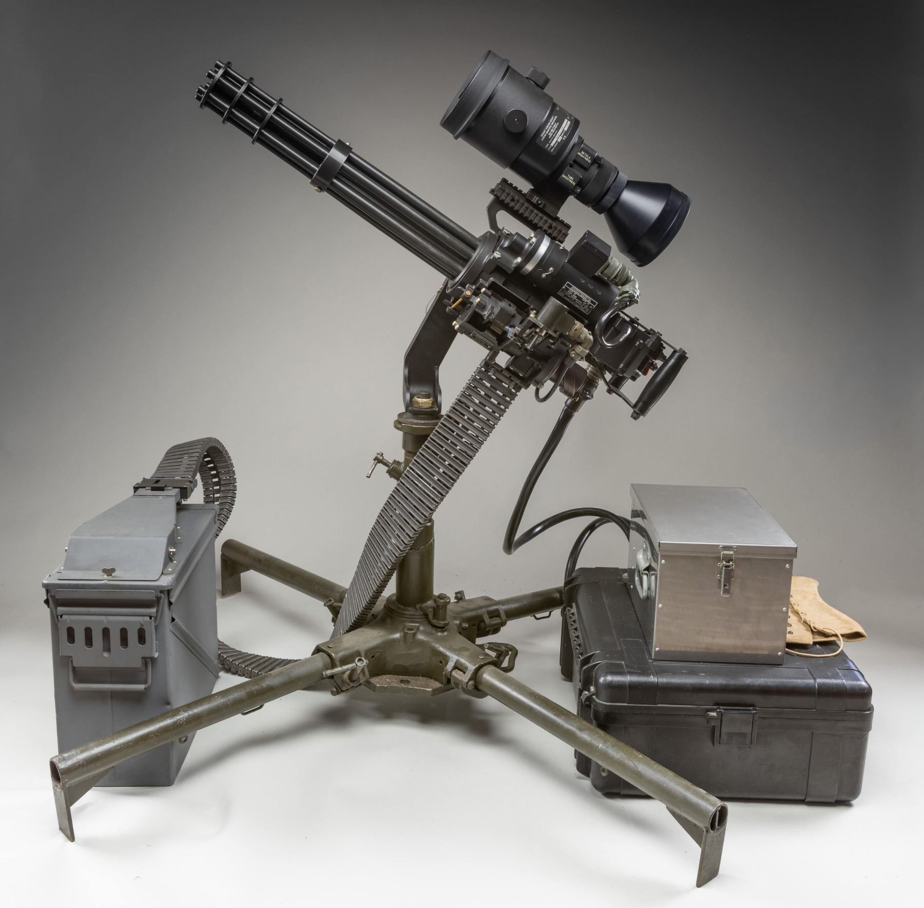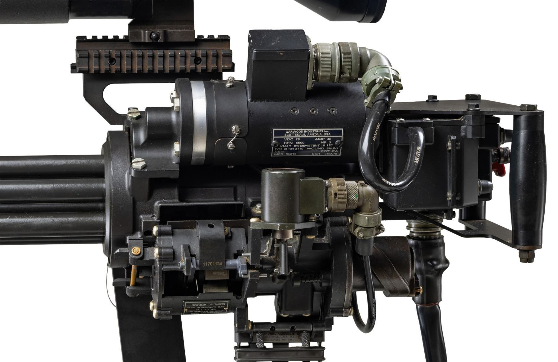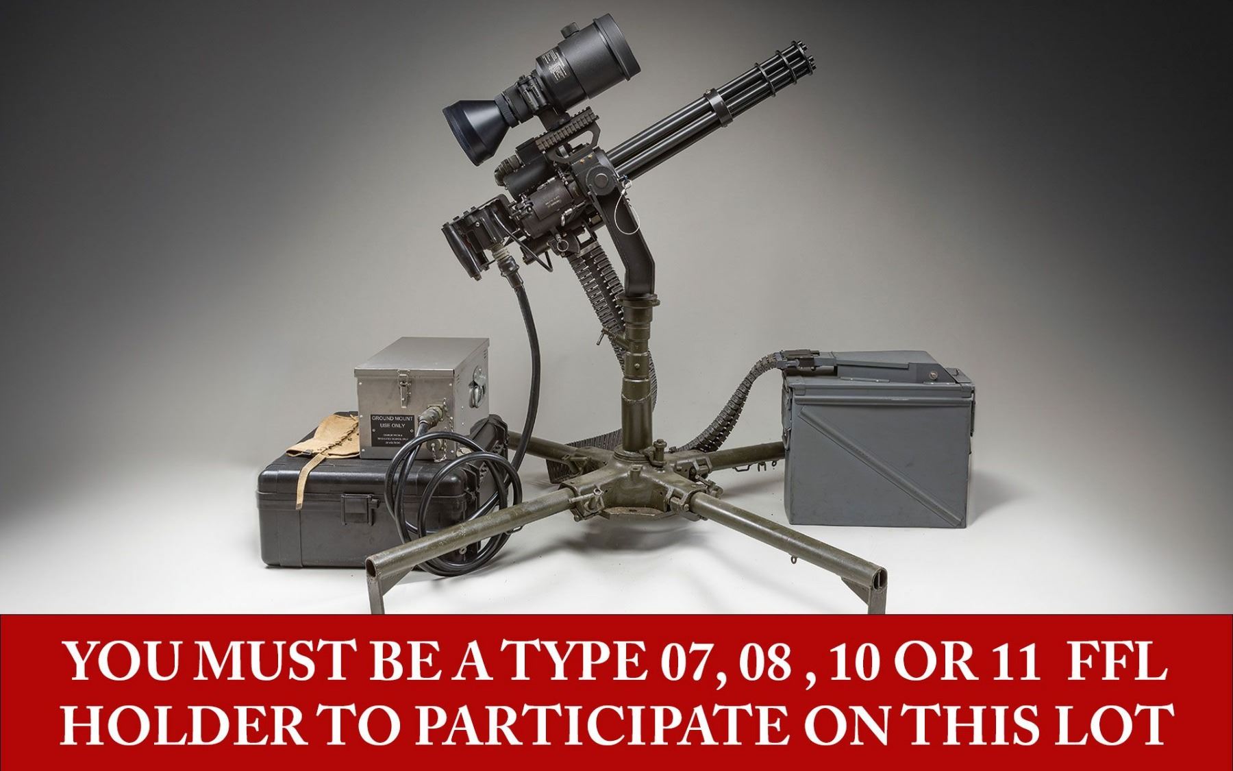POST 1986 DEALER SAMPLE MACHINE GUN. TEST FIRED ONLY. ***BIDDERS INTERESTED IN THIS LOT MUST CURRENTLY HOLD A TYPE 07, 08, 10, OR 11 FFL.*** Cal. 7.62x51. S#MINI-001. Bbl. 22". This may perhaps be the most exciting opportunity to transfer in what many people consider "The Holy Grail" of the NFA World, an example of the M134 "Minigun". Since the mid 1960s, the Minigun has been much more of a star on the battlefield than it has on the silver screen. With its distinct sound and enormous rate of fire, it is immediately distinguishable by all within even a remote proximity. It has been well over 50 years since the lore of "Puff the Magic Dragon" began, and with modern technology assisting in fine-tuning this incredible weapon system even more, it appears that it is here for many more years to come. Capable of firing in excess of 6,000 rounds per minute and designed after the M61A1 20mm Vulcan, the Minigun can inflict a devastating amount of damage in a minimal amount of time. With several rate of fire settings depending upon the model and manufacturer, there is no question that firing up to 100 rounds of 7.62x51mm NATO (.308 Win) per SECOND, for several seconds, has the potential to eliminate whatever immediate threat is being targeted. This example is a modern Garwood Industries variation, registered by JLM, technologically improved, several-fold since its beginning. This is a complete package, providing a turn-key opportunity to spin heads faster than the barrels themselves. From the US. M63 Machine Gun Mount below, to the SU-88/TVS-5 Crew Served Weapons Night Sight above the receiver, forward of those iconic spade grips & control panel are included. The feed chute, to connect it to the feed box, along with the power supply to drive the Garwood improved, 40 Amp, 3 horsepower, 28 Volt DC motor at 6,500 RPM are included. It has been on display at the Shooters Outpost Military Museum, and now it's time to bring it to life at your facility. UNATTACHED ACCESSORIES: Ground mount, feed chute, power supply, SU-88/TVS-5 Night Sight, Garwood Feeder Delinker, etc. & all parts as photographed. CONDITION: Gun has only been used for display at the museum, and never fired after Garwood initial test firing. POST 1986 DEALER SAMPLE MACHINE GUN WITH NO LAW (DEMO) LETTER REQUIRED TO TRANSFER. RESTRICTED REGISTRATION POSSESSION LIMITED TO CONTINUED COMPLIANCE WITH PROVISIONS OF PUBLIC LAW 99-308. IF YOU ARE AN 07, 08, 10, or 11 FFL/SOT YOU MAY TAKE TRANSFER OF THIS FIREARM UPON APPROVAL OF TRANSFER. PROVENANCE: Military Museum Collection of Shooters Outpost, Hooksett NH. THIS ITEM WILL BE AVAILABLE FOR PREVIEW BY APPOINTMENT AT THE SHOOTERS OUTPOST MUSEUM IN HOOKSETT, NH. TO SET UP AN APPOINTMENT, PLEASE CALL 207-453-2114. (50-1912/ZAL) MODERN. CLASS III. $125,000-150,000.
