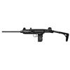 Cal. 9mm Luger. S# SA43076. Bbl. 16 1/4". A closed bolt semi automatic version of the world-famous SMG. Fitted w/ factory collapsible stock. Front sight elevation adj. protected post. Rear sight flip up L type peep sight. Classic black painted finish on most exposed metal parts. F-S trigger group. Rotating sling swivel on left side of receiver. Black plastic furniture. MAGS: none. CONDITION: this firearm has had very little use, if any at all. No noticeable major blemishes on finish of any exposed area. Shiny bore w/ strong rifling. Fire control mechanism appears to function properly when cycled by hand. (20-362/JZ). MODERN. $800-1,200.