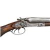 Cal. 12 GA. S# 127417. Bbl. 30". SxS hammer shotgun mfg. by American Gun Co. Top of right bbl. is marked "GENUINE DAMASCUS." with "CHOKE BORED" on the left. Left lockplate is marked "AMERICAN GUN CO. NEW YORK.". Receiver and lockplates exhibit floral and wavy line engraving, with a case color hardened finish. Checkered wood buttstock and forend have been sanded and revarnished. Solid matte rib with brass bead front sight. Matching numbers are present on the receiver (on watertable), bbls., as well as on the forend and forend iron. CONDITION: receiver retains traces of its original factory case color hardened finish, with the balance retaining a gray patina overall. Sideplates retain large amounts of their case color hardened finish, exhibiting some mild wear and thinning along edges. Bright bores, exhibiting scattered areas of light to mild pitting throughout. Wood furniture exhibits some scattered marks and minor impressions from handling and storage, but otherwise remains sturdy and serviceable. PROVENANCE: from the lifelong collection of Robert "Mike" Bricker. (24-1033/MLW). CURIO. $300-450.