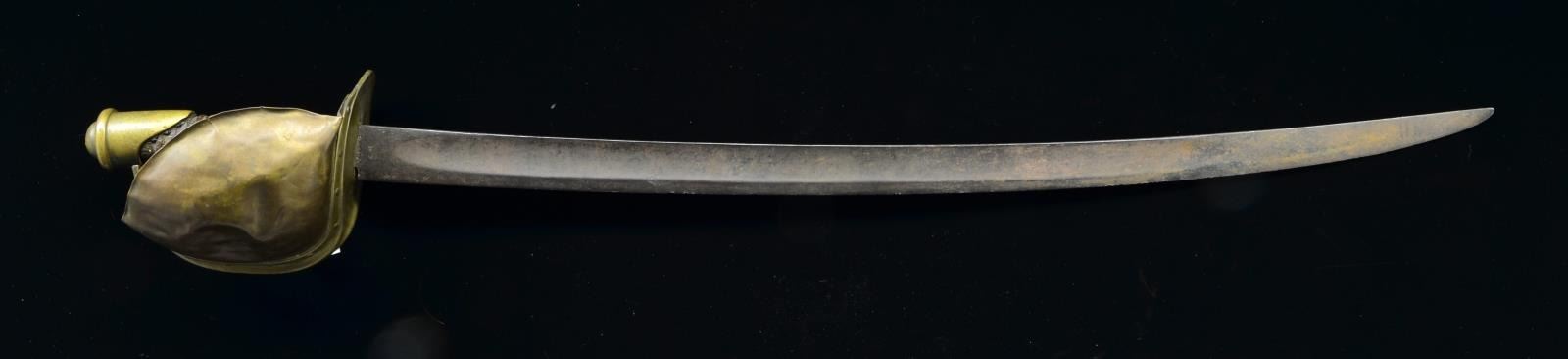 25.5" Blade. 31.5" Overall. CONDITION: iron patina, dented & bent basket, grip is broken retaining about half of its original wood w/ only traces of leather under pommel cap. (02-16668/JS). $200-300.