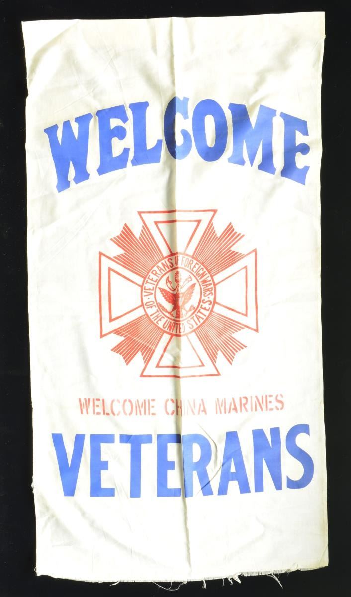 AMMO BOX, CHINA MARINE BANNER, VETERANS MEDALS