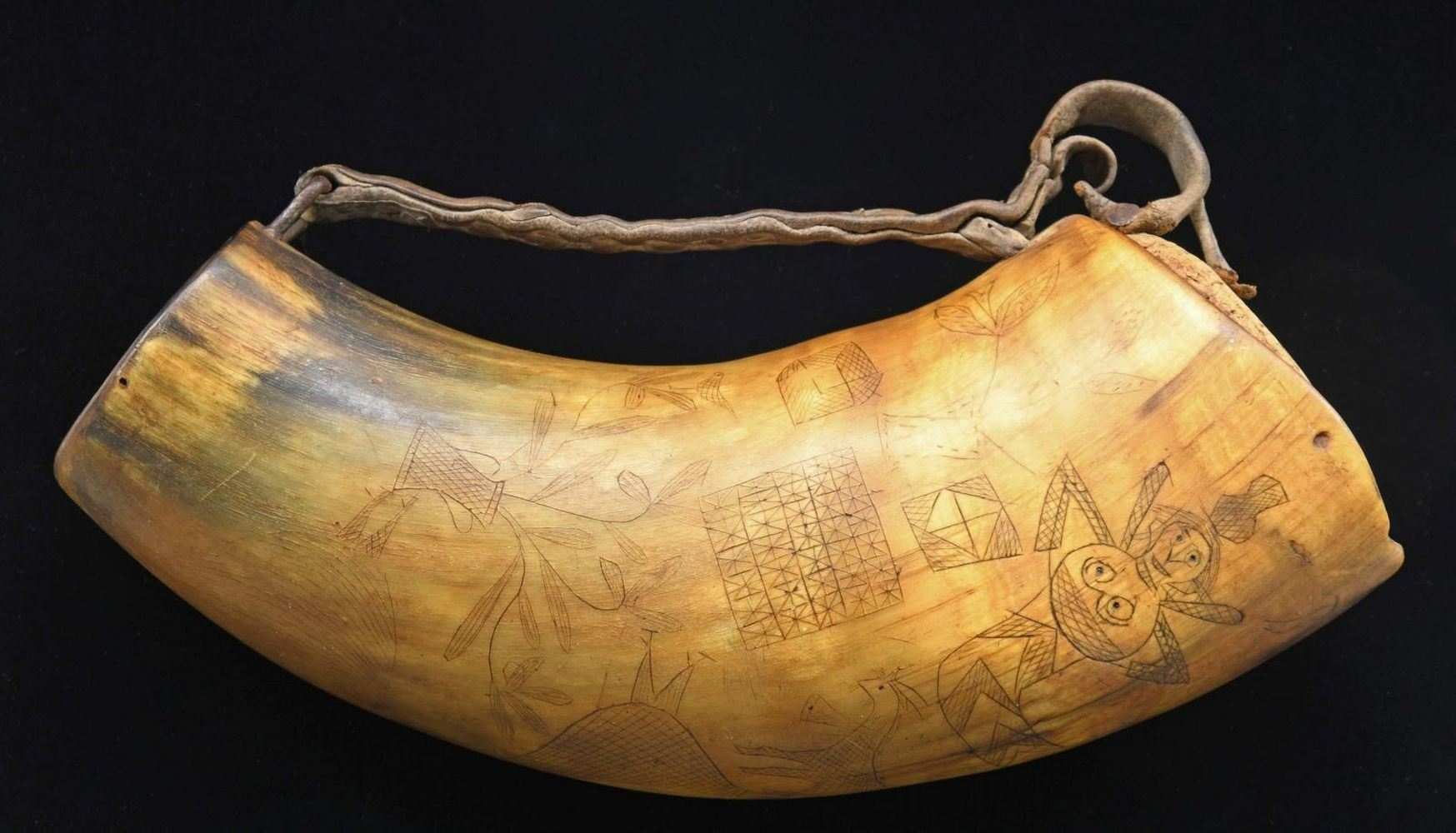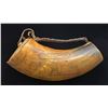 AN INTERESTING FOLK ART CARVED STORAGE HORN OF