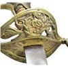 STAR. 35" overall, 30.25" unstopped fuller blade, long 1.5” ricasso. This pattern Confederate staff was probably first made by Boyle & Gamble of Richmond, VA. CS & Star in a wreath w/ tobacco leaf & laurel decoration. Other makers who copied this unique Confederate pattern include Douglas of Columbia, SC & Froelich of NC, but this is one variant that is unknown as to manufacturer. Distinctive features of this particular unknown maker include smaller block letter “CS”, long ricasso. Long armed starfish-like star, & plain smooth unadorned pommel cap. CONDITION: good to very good overall, gray blade, carved wood grip missing leather & wire wrap except for fragments protected under pommel cap, wood has hand worn patina, 2 long age cracks, brass has smooth olive brass patina. Hilt loose due to missing protective washer. (02-19118/JS). $3,000-4,000.