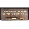 RIFLE DISPLAY. Relic condition Springfield trapdoor rifle mounted on a display board reading "FROM OUT OF THE PAGES/ OF WESTERN HISTORY...". Barreled receiver is mounted above a card that reads "SPRINGFIELD SADDLE GUN- MODEL EARLY 1870'S/ THIS WEAPON IS PROBABLY A CONVERTED/ U.S. INFANTRY " TRAPDOOR" RIFLE. CAL 45-70" above "FOUND IN MARCH 1973 ABOUT 30 MILES SOUTH/ OF CAMP VERDE. IT WAS LAYING ON TOP OF A LARGE ROCK HIGH ABOVE THE VERDE RIVER.". Remnants of the buttstock are present w/ a piece of the forend also being present. CONDITION: relic condition w/ oxidation & pitting overall. Board exhibits some losses to its frame w/ the right side frame panel having come loose at the bottom. PROVENANCE: from the Lifelong Collection of Glen E. Mattox. (01-22604/MLW). $300-500.