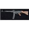 Cal. 22 LR. S# A481002DE. Bbl. 17.75". This piece, made in Germany & imported through ATI in Rochester NY. is an interesting facsimile of the desirable STG44. Chambered in 22 LR & packaged in an attractive wooden shipping crate w/ rope handles, attention to detail appears to be a top priority. Dark black finish on all surfaces contrasted by a wooden stock & grip panels. Blowback operated semi automatic w/ left side non reciprocating charging handle & right side dust cover. Hooded blade front sight & adjustable rear tangent sight w/ a radius of 17". Left side controls. Black ventilated steel hand guard. Right side mounted brown leather sling. MAGS: 2 plastic 25 rd. magazines. UNATTACHED ACCESSORIES: original wooden shipping crate, cleaning brush, lock & factory paperwork. CONDITION: all outward appearances indicate very little use if any. No visible blemishing. The only finish thinning is a fine line between the mechanical intervention of the safety & receiver which happens almost immediately. Bright bore w/ strong rifling. Fire control mechanism appears to function correctly when cycled by hand. (22-5484/JZ.) MODERN. $300-500.