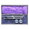 SINGLE SHOT TARGET RIFLE. Cal. 45 2 1/10" (45-70). S# 098. Bbl. 34" tapered rnd. w/ the Rigby flat. Top is marked "MODEL 1877 - AXTELL RIFLE CO. SHERIDAN MONT.". Adj. wind gauge globe front sight w/ Vernier sight bases on receiver tang & stock comb. Case colored back action hammer lock w/ checkered trigger having borderline engraving w/ scroll highlights. Ebony tipped forearm & S curved pistol grip stock of fancy walnut w/ point pattern hand checkering. LOP: 13 1/2" over checkered hard rubber shotgun style buttplate. UNATTACHED ACCESSORIES: Axtell Rifle Co. sight box containing No. 6 long range & No. 5 mid range vernier sight staffs along w/ 2 eye cups & 4 front sight inserts. Rifle & sight box are housed in a handmade oak shooter's case w/ brass latches. Also includes brass tipped cleaning rod. Ring binder notebook containing extensive information about Axtell rifles w/ built sheet & invoice for this rifle dated 1/17/97. Also contains copy of the Feb. 1992 gun report & other information included by the consignor. CONDITION: near excellent. Bbl. & action retain over 99% bright original finish. Stock has very good original finish showing a few sm. handling marks. Bright near excellent bore. (19-5773/DS). MODERN. $5,000-7,000.