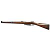 Cal. 8mm Mauser. S# 4529d. Bbl. 18". VC Schilling mfg. & dated 1890. S marked receiver. Action screws are unnumbered Bavarian arsenal replacements but all other visible parts are matching. Ladder rear sight graduated to 1200m. U shaped front sight w/ protective ears. Rear band unit marked "B2SR398" (Bavarian Heavy Cavalry) Walnut stock w/ left side sling provisions. Right side of butt has original cartouches w/ Bavarian rework cartouches. CONDITION: walnut stock retains much of its Bavarian arsenal finish w/ scattered light dings, handling marks & scratches. Brightly finished receiver & bolt appear lightly cleaned long ago but are now turning to a dull gray w/ some light scratches on front of receiver & rear of bbl. jacket & some oxidation staining. Rear sight base retains a strong amount of straw finish. Balance of metal retains 60% arsenal blue finish w/ some light oxidation on magazine body & scattered fading to brown. Very good plus bore. (01-20694/MJC). ANTIQUE. $700-1000.