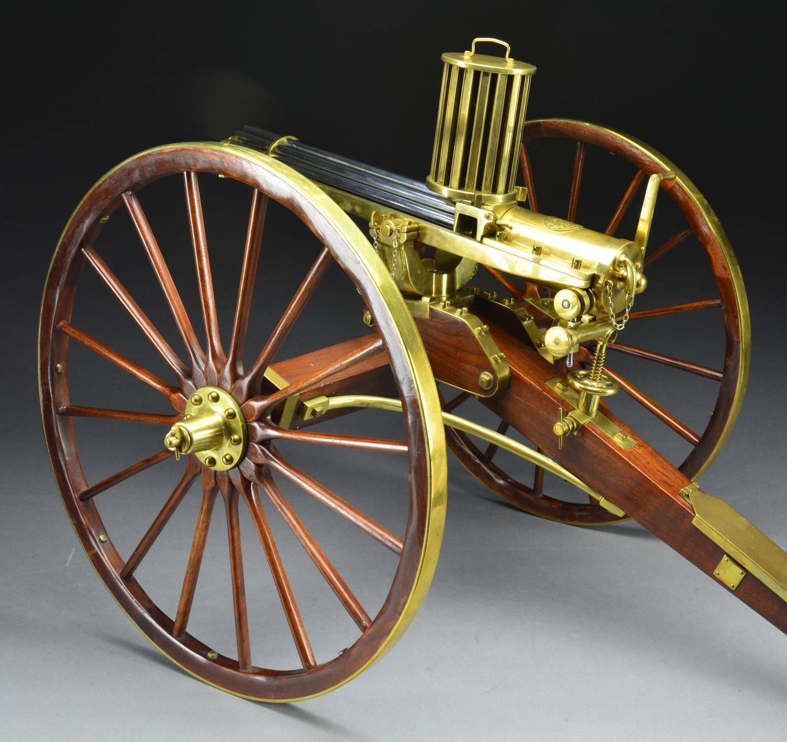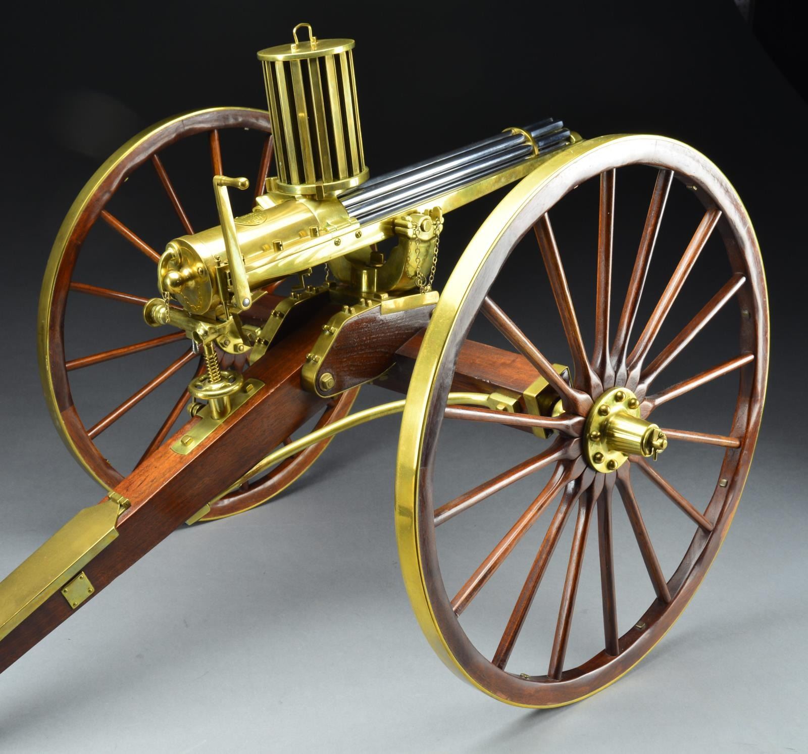 BEAUTIFUL FURR ARMS 1874 GATLING GUN ON CARRIAGE.