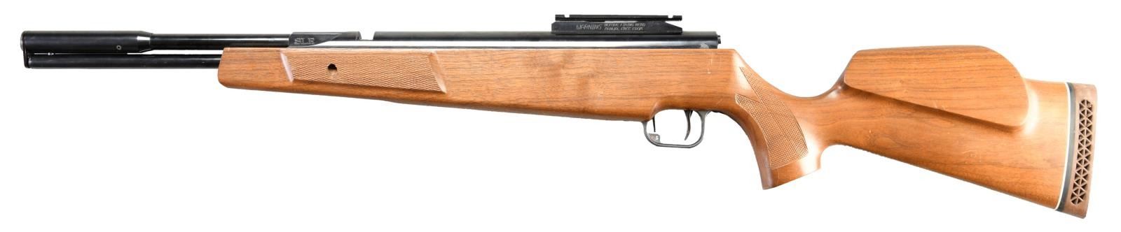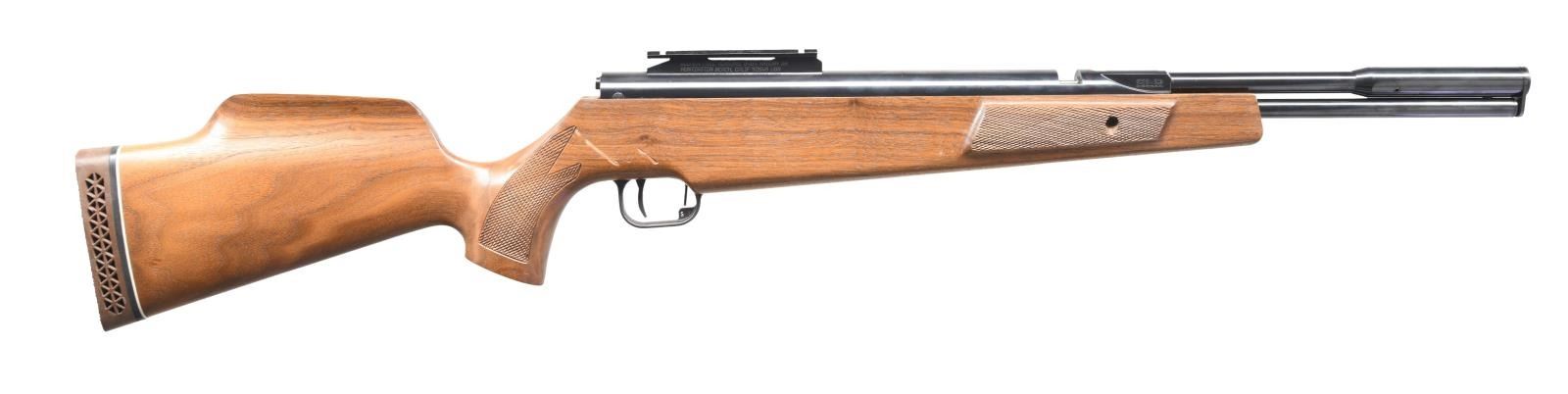 Blued steel construction with a 1 piece checkered wood Monte Carlo pattern buttstock and red rubber recoil pad. Marked "SLR" on either side of the breech, with "BEEMAN" over the top. CONDITION: very good, with metal components retaining the cast majority of their original factory blue finish, showing some scattered marks overall from handling and storage. Few spots of light oxidation. (02-20166/MLW). $100-200.
