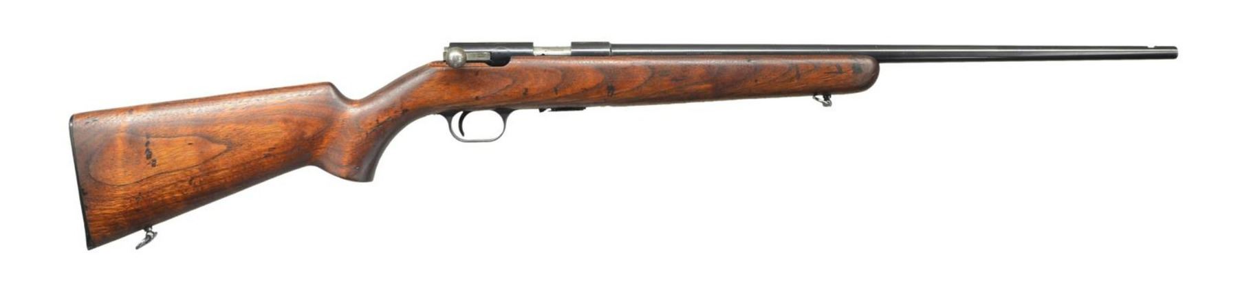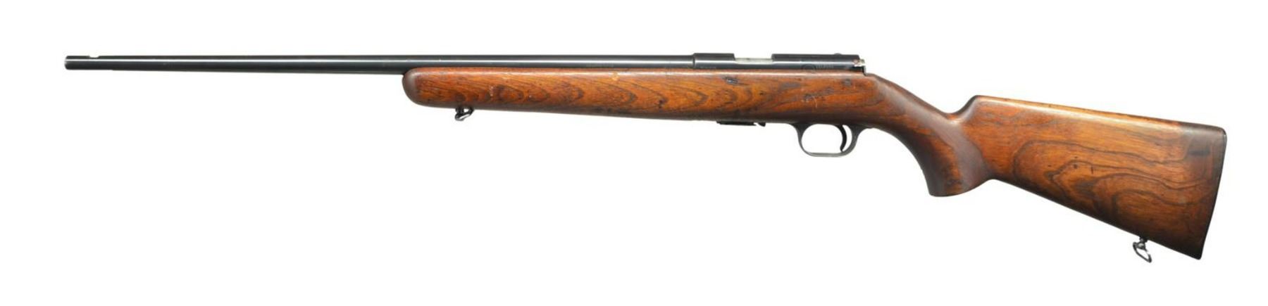 Cal. 22 LR. S# 12179X6 (1966). Matching numbered 22" bbl. w/ dovetail for front sight. Grooved receiver having import mark over Belgian proofs on left side. Walnut stock w/ sling swivels & buttplate. MAGS: 1-5 rd. CONDITION: very good blue w/ pinprick oxidation, edge wear & marks throughout. Receiver has notable areas of scratches on top. Trigger guard has wear & scratches. Lightly sanded & refinished wood has very good appearance w/ previous marks & newer marks on left side marks that pierce the finish. Very good bore. (23-1278/MD). CURIO. $300-500.