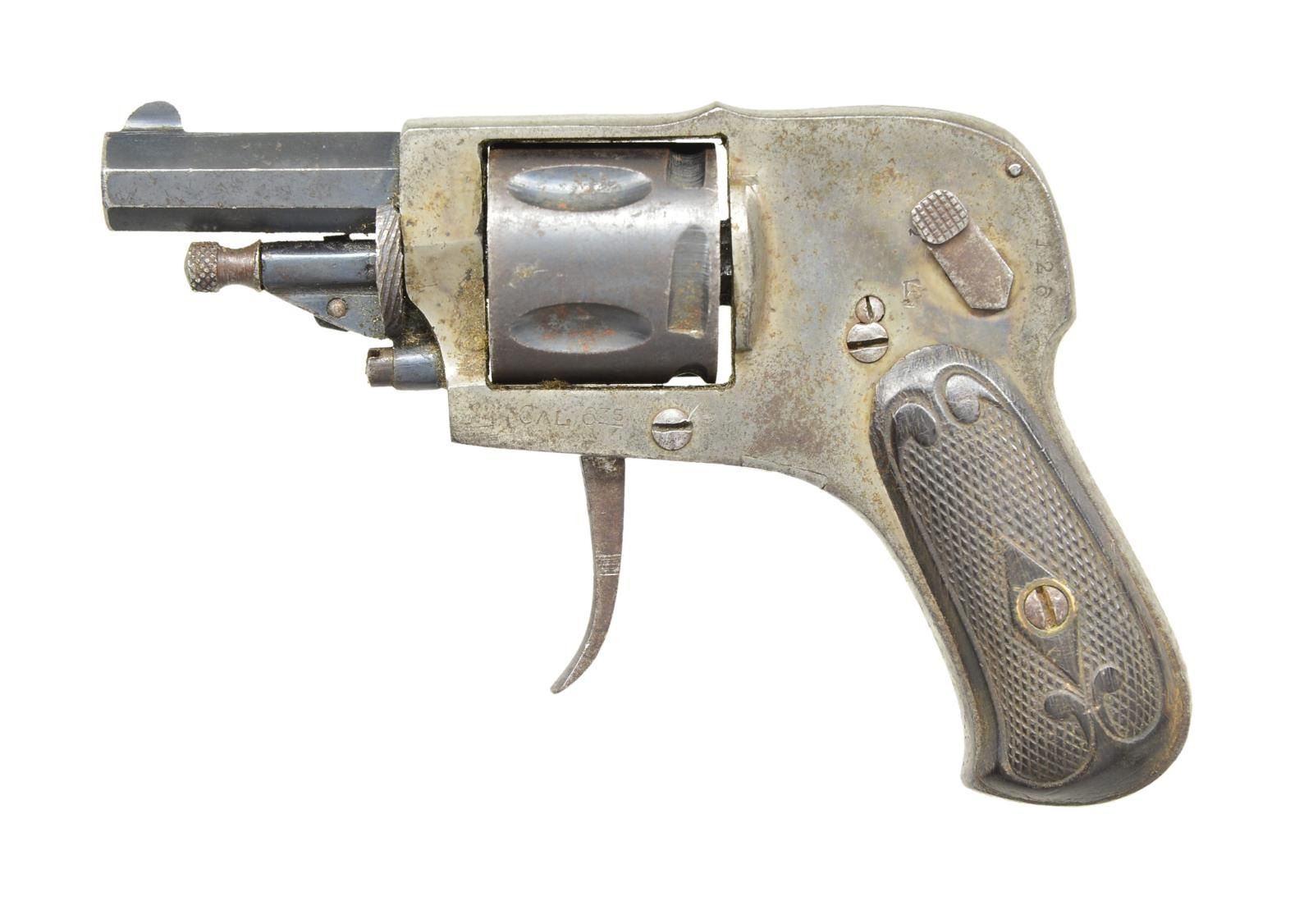 BELGIAN FOLDING TRIGGER HAMMERLESS REVOLVER.