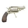 Cal. 5.5 Velo Dog. S# 40. Bbl. 1.75". Interesting traditional double action revolver designed for self-defense against dogs while riding bicycles. Chambered in a centerfire round very close in performance to the .22LR. Front folding trigger. Blade front sight. Single diamond checkered wood grips. CONDITION: Gun appears to have been plated w/ very little original finish remaining. Grips demonstrate some wear in the form of flattening the checkering but remain remarkably clean & solid. Bore demonstrates some fouling while retaining strong rifling. Fire control mechanism appears to function correctly when cycled by hand. (22-5217/JZ). CURIO. $125-175.
