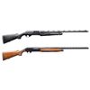 1) NOVA PUMP. Cal. 12 Ga., 2 3/4", 3" & 3 1/2". S# Z045700. Mfg. 2000. VR 28" bbl. w/ fiber optic front sight; steel mid bead has been cut off. 3 Benelli extended choke tubes included: 2 Mod & IM. Matte black metal finish. Black synthetic stock set. CONDITION: very good to near excellent overall appearance with light wear marks on left side of barrel & a few dents on rib. Near excellent bore. (25-4454/MD). 2) SL-80 SERIES MODEL SL-121 SEMI AUTO. Cal. 12 Ga., 2 3/4". S# 140945. Mfg. 1985. Manufrance VR 28" bbl. w/ steel post & fixed Full choke. Black finish. Checkered Field walnut stock set. LOP: 14.5" to Benelli buttplate. Swivels included. CONDITION: very good overall appearance with marks on mag. cap & light scratches. Shiny bore with light fouling. (25-4508/MD). ALL MODERN. $700-1,000.