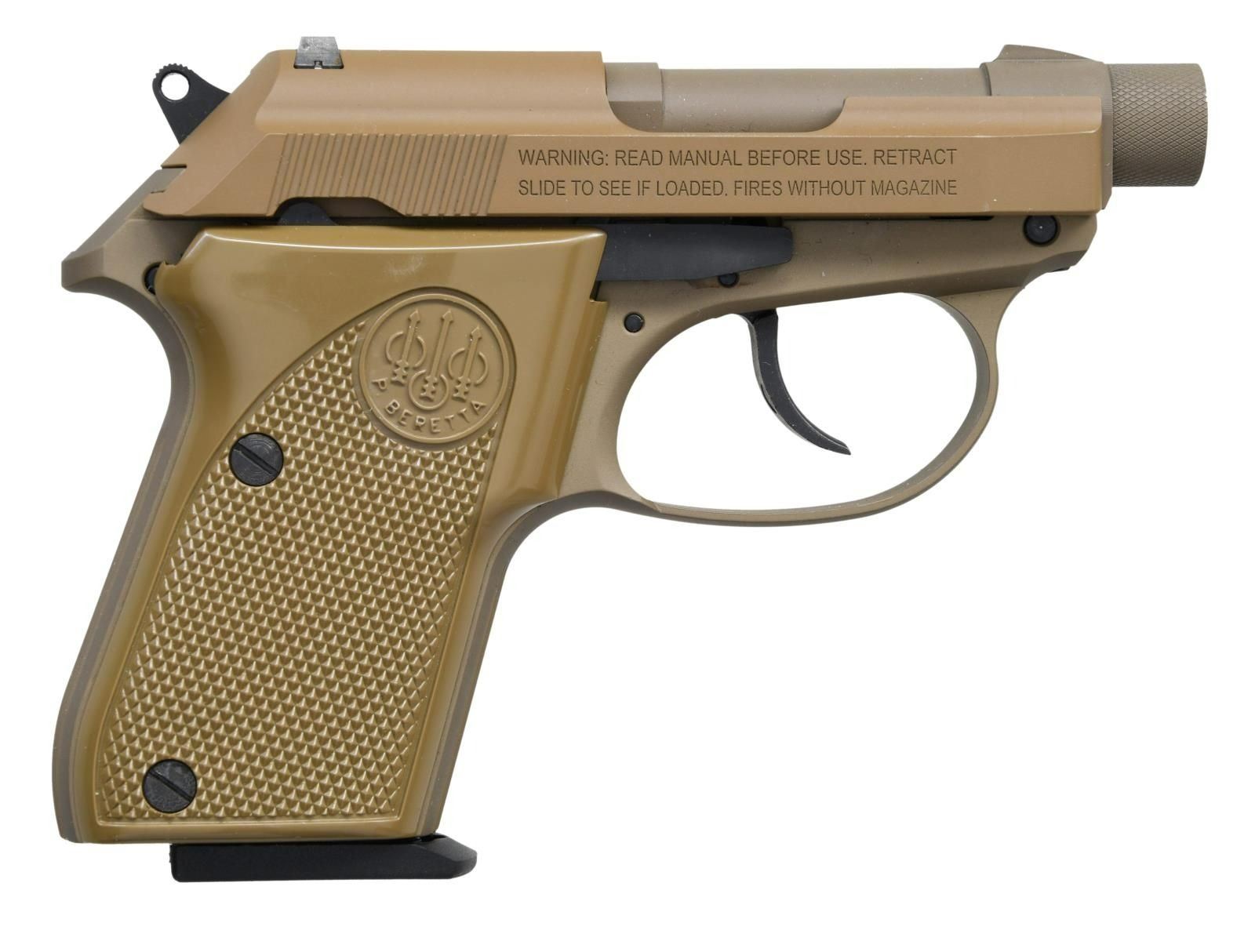 Cal. 32 ACP. S# DAA627050. Bbl. 3" threaded w/ thread protector. Blade front sight. Low profile fixed rear sight. FDE finish. Checkered FDE grips w/ Beretta logo. MAGS: 1-7 rd. UNATTACHED ACCESSORIES: w/box. CONDITION: all aspects near excellent. PROVENANCE: The Collection of Gun Sport Ltd owned by Jon R. Thomas. (23-4214/MJC). MODERN. $500-650.