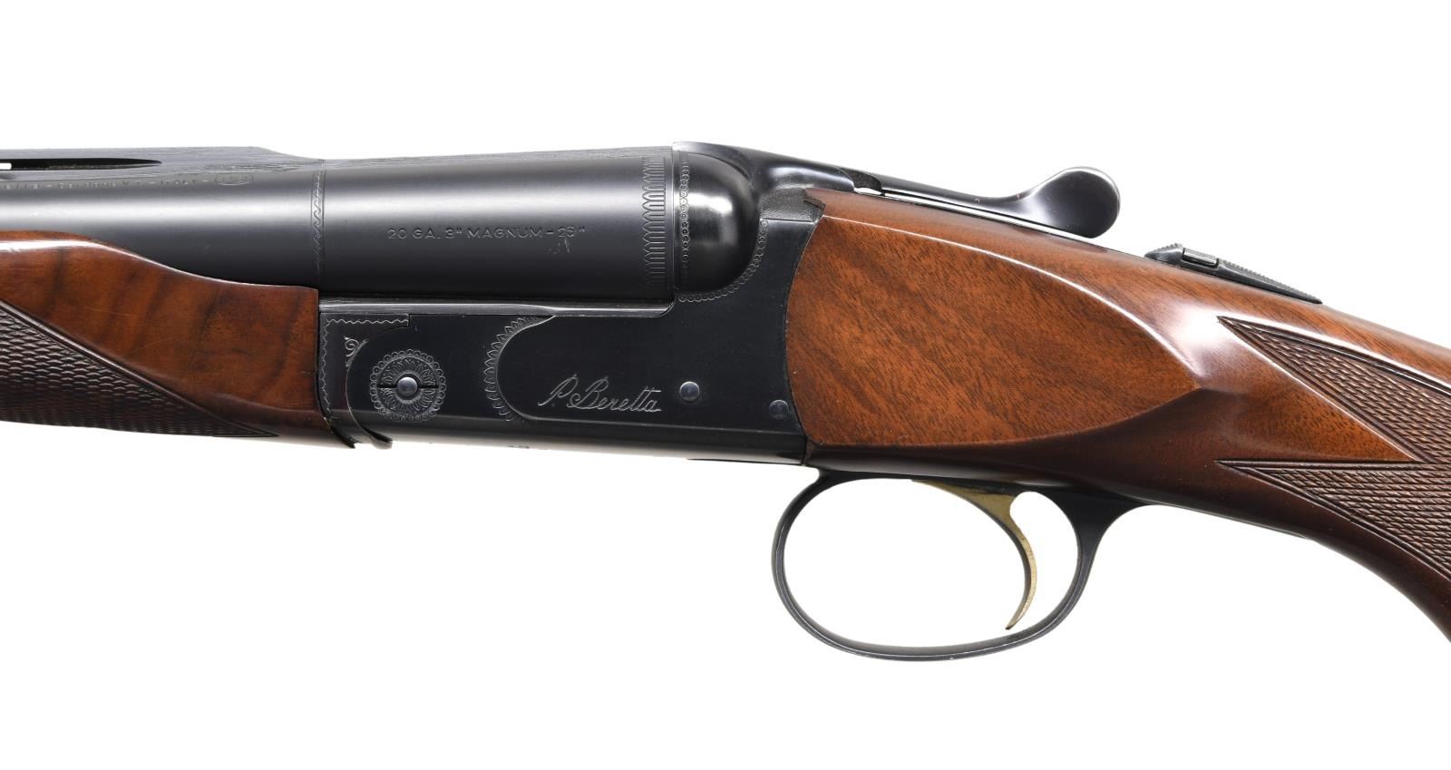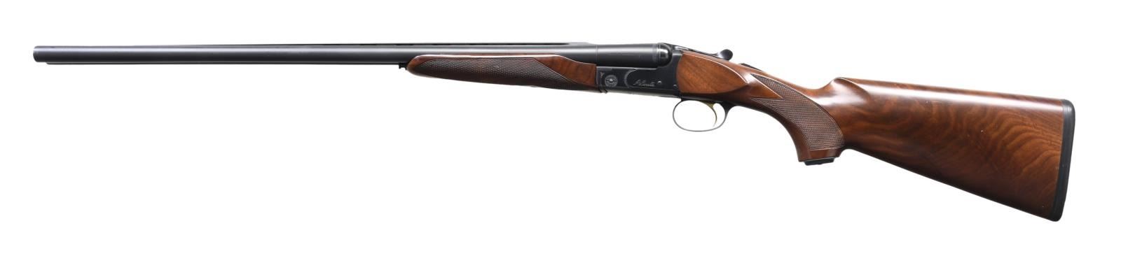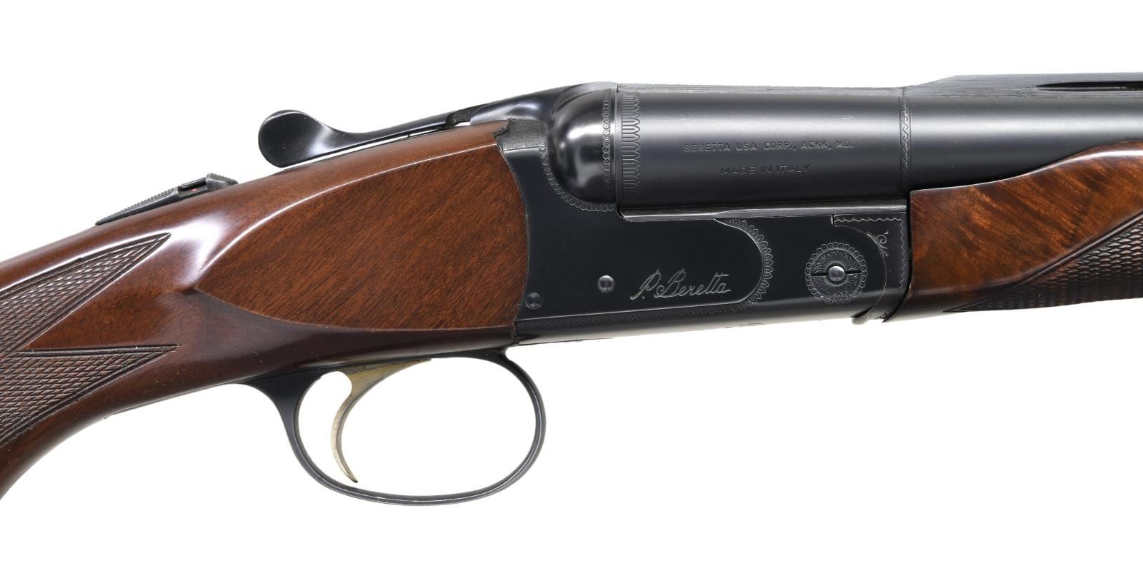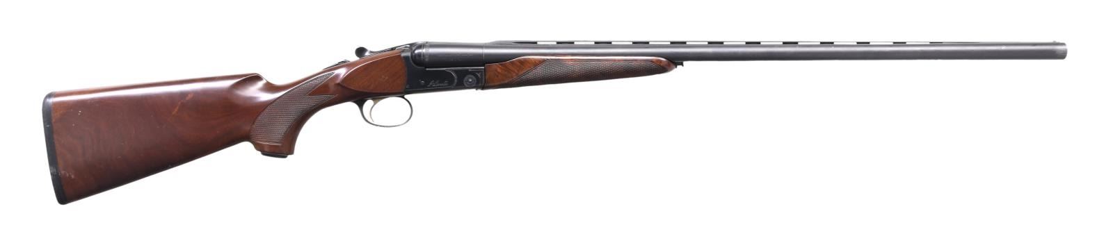 Cal. 20 ga. 3". S# A42590A. Bbl. 26 3/8" with vent rib and steel bead. MobliChoke, interchangeable tubes, and skeet tubes included. Scalloped boxlock action with a gold-finished single selective trigger. Selective ejectors. Trim beavertail forearm and steel-capped pistol grip stock with cut checkering and satin finish. Mfg. 1988-90. WEIGHT: 6 lbs, 8.8 oz. CONDITION: 97% original blue; original wood finish shows scattered scratches & marks. Bright, near-excellent bores. (23-7040/DS). MODERN. $1,250-1,750.