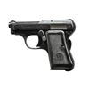 Cal. 25 ACP. S# 650012. Bbl. 2.5". Manufactured 1937 - 1961. The original Agent 007 carry piece, favored by James Bond from the "Casino Royale" era into "Dr. No". The Beretta model 418 is a very small, self loading, single action pistol w/ rear grip safety. Loaded chamber indicator. Dark blued finish. Fixed sights on serrated slide. Thin, black plastic grips. MAGS: 1 steel 7rd. CONDITION: original finish enjoys descent overall coverage though has succumb to some thinning on high spots & several small scratches typical of a "pocket carry" piece. Matching numbers on frame & slide. Bore is shiny w/ strong rifling. (22-3441/JZ). CURIO. $300-500.