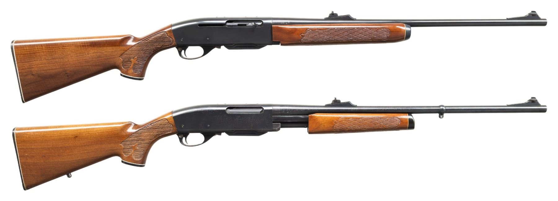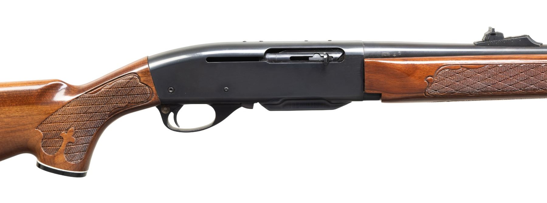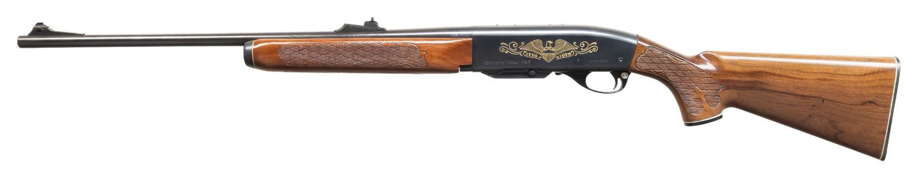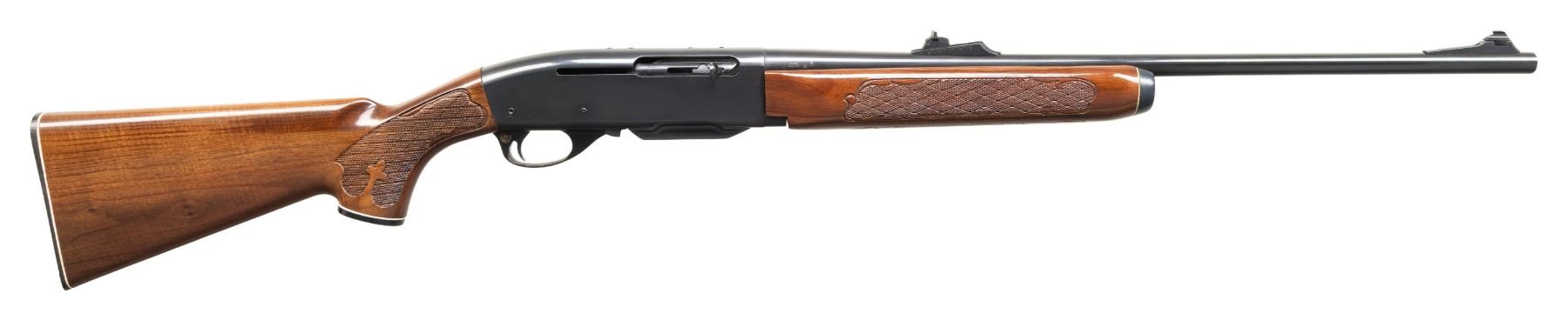 1) 742 SEMI AUTO. S# A7208666. Bbl. 22"; bbl. code "PI" indicates June 1976 mfg. Sporting Rem. sights. Press checkered walnut stock set. MAGS: 1 - 3 rd. CONDITION: near excellent overall appearance with light scratches on top of receiver. Very good rifling. (25-5809/MD). MODERN (Curio on July 1st, 2026).