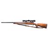 ACTION RIFLE. Cal. 300 Win Mag. S# H010. Bbl. 24" Apex Imperial Grade medium sporter weight sightless w/ broach cut rifling. Hand-made action of Stewart's own design having 3 locking lugs at rear much like the Schultz & Larsen. This design provides a short bolt throw & buttery smooth operation. Wing type safety on cocking piece. Left side bolt release. Grooved single stage trigger. 2 shot internal mag. that loads through the floorplate. Leopold M8, 4x32 gloss finished scope w/ duplex reticle on Buehler mounts. Monte Carlo cheekpiece stock of fancy walnut w/ tight fiddle grain. Rosewood forearm tip & grip cap w/ white line spacers. Borderless fleur-de-lis 22 LPI hand checkering. Leather military style sling on QD swivels. LOP: 14 1/8" over a White Line pad. WEIGHT: 9 lbs, 13 oz. Mfg. 1976. CONDITION: near excellent condition retaining over 99% original blue. Very good stock finish showing a few small marks. Bright near excellent bore. Scope has clear optics. MODERN. $2,500-3,500.