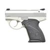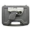 Cal. 9mm Luger. S# S02453. Bbl. 3.5". Small, double action only, 9mm pistol that would eventually be marketed under the Bond Arms Bullpup label. Rotating barrel, locked-breech design. Aluminum frame w/ stainless slide. Serrated slide w/ 3-dot sights. Matte finish frame. 2 Piece textured plastic grips. Serrated front strap. Left side controls. MAGS: 3 factory 7 rd. UNATTACHED ACCESSORIES: black plastic factory box, lock & paperwork. CONDITION: all aspects indicate very little use. No obvious finish wear. Bright bore w/ strong rifling. Fire control mechanism appears to function correctly when cycled by hand. (22-3419/JZ). MODERN. $400-600.