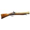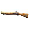 Cal. 65. NSN. Bbl. 10" octagon to rnd. with faceted transition and single raised band at cannonade muzzle that flares to 1 3/4" diameter. Breech section of bbl. has proof marks including the standard Belgian black powder proofmark consisting of "ELG" in oval. Iron back action percussion lock and hammer with highlights of floral engraving. Brass trigger guard, buttplate finial, and thimble have matching engraving. Pin fastened walnut stock. Left side of stock has brass clamshell patchbox and iron belt hook. Slotted tip iron ramrod. CONDITION: brass bbl. shows evidence of cleaning with numerous small dents and handling marks. Muzzle shows small dents that leave it somewhat out of rnd. Lock, hammer, and iron fittings have faded brown appearance. Stock has lightly worn finish showing numerous scratches and marks with small chips behind the lock. The hammer will not hold in cocked position. (01-26676/DS). ANTIQUE. $2,000-3,000.