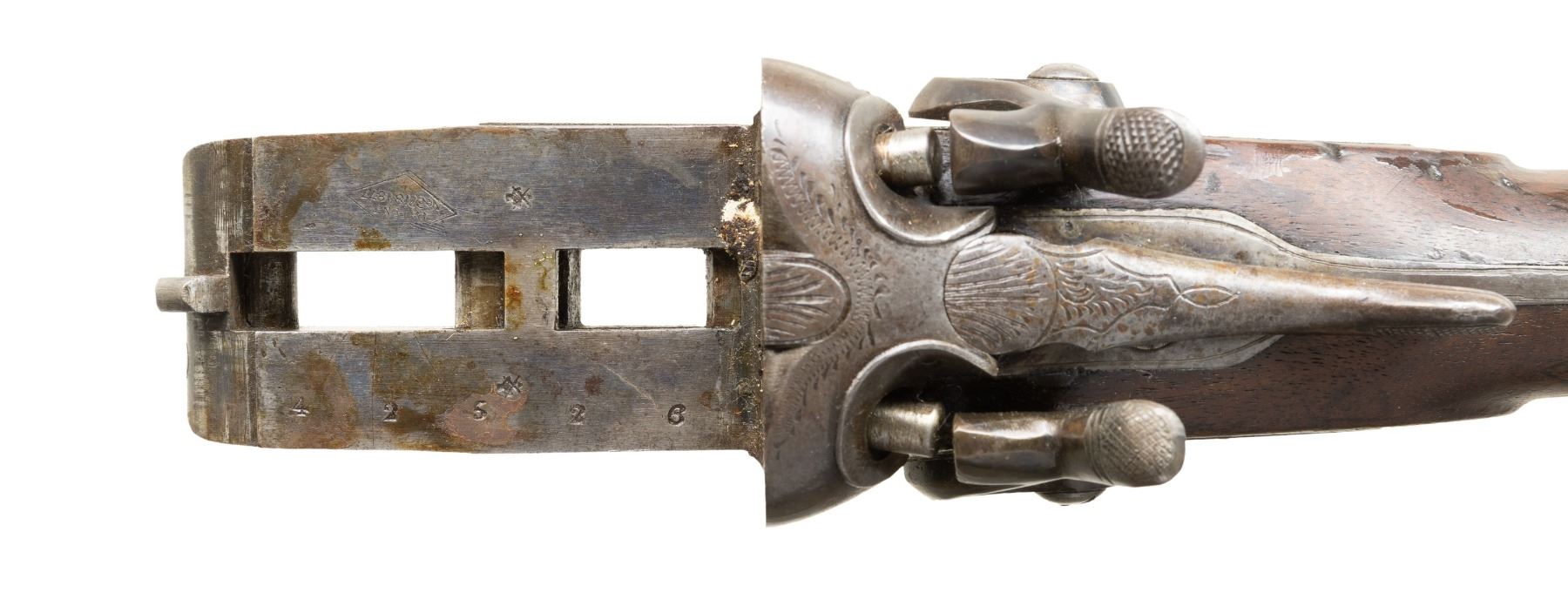 Poor: No original finish, possibly some major parts replaced, loose but functional mechanics, active or heavy external rust, poor bore with heavy pitting and little or no rifling visible.