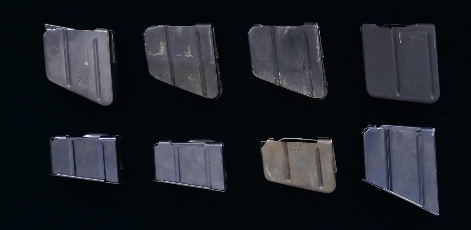 7.62X51 - 2 Pro Mag. 5 rd. / 1 Pro Mag. 10 rd. / 1 original Sterling 10 rd. dated "59". CONDITION: varying good to new. (02-16810-3/NW). $100-200.
